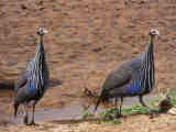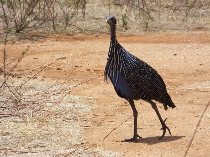 In the relatively cool and mostly cloudy morning I drove out and along the river again to find some animals and take some photos. First I found some vulture-headed guinea fowls again, and I think they were quite photogenic.