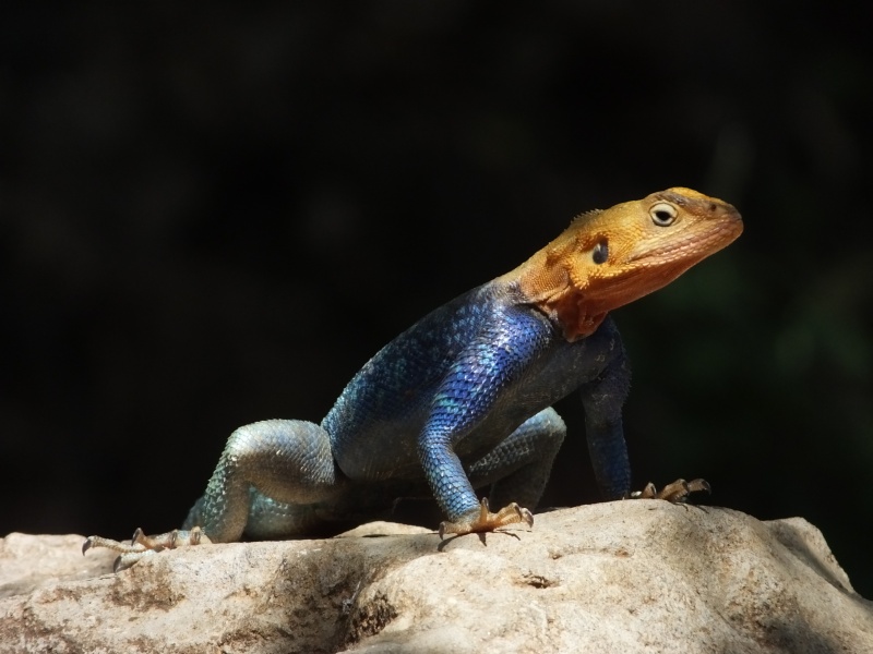 Back in the lodge we met this colorful male agama next to the open-air restaurant.