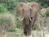 On our way we met a group of elephants who were marching straight towards us as a front, so I felt like backing up and giving way. Fortunately they did not drive us back very far, because they then went off the track, straight towards the river. I guess they had been away for a day or two and were thirsty. I had no time taking photos while handling the car, so you'll have to believe me and imagine.