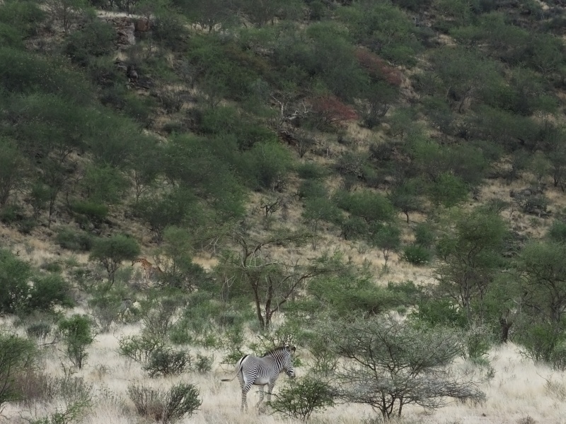 During the afternoon I drove relatively far in a northeasterly direction and found a dozen of the shy and rare Grevy zebras in the hilly area.