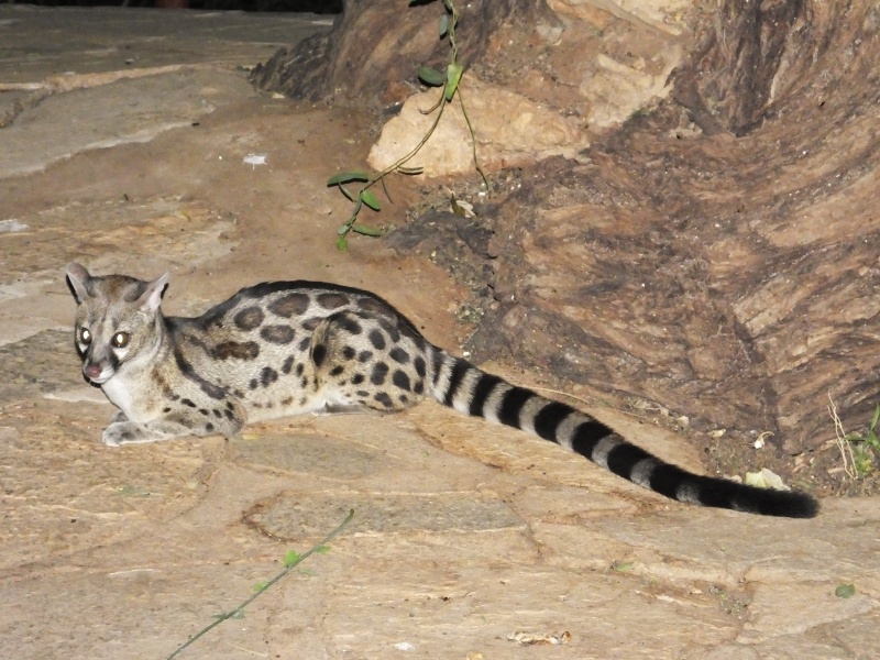 It is often called "genet cat", but it is not actually a cat. It is shy, but it liked bits and pieces from our dinner, like meat.
