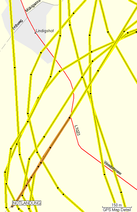 Die Landung wird dadurch erschwert, dass man die Linie nicht nur halten, sondern auch bei der Landung treffen muss. Hätte ich beim Feldweg daneben getroffen, dann wäre das möglicherweise schlecht ausgegangen.