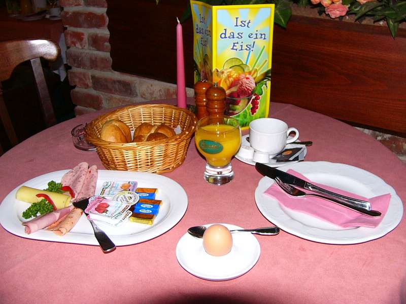 Frühstück gab es von 8 bis 10 Uhr, und ich saß schon um 8 Uhr am Frühstückstisch, weil ich so bald wie möglich wieder zum Flugzeug wollte.